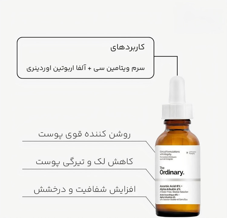 حاوی 8% آسکوربیک اسید و 2% آلفا آربوتین